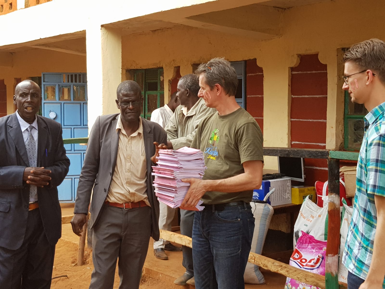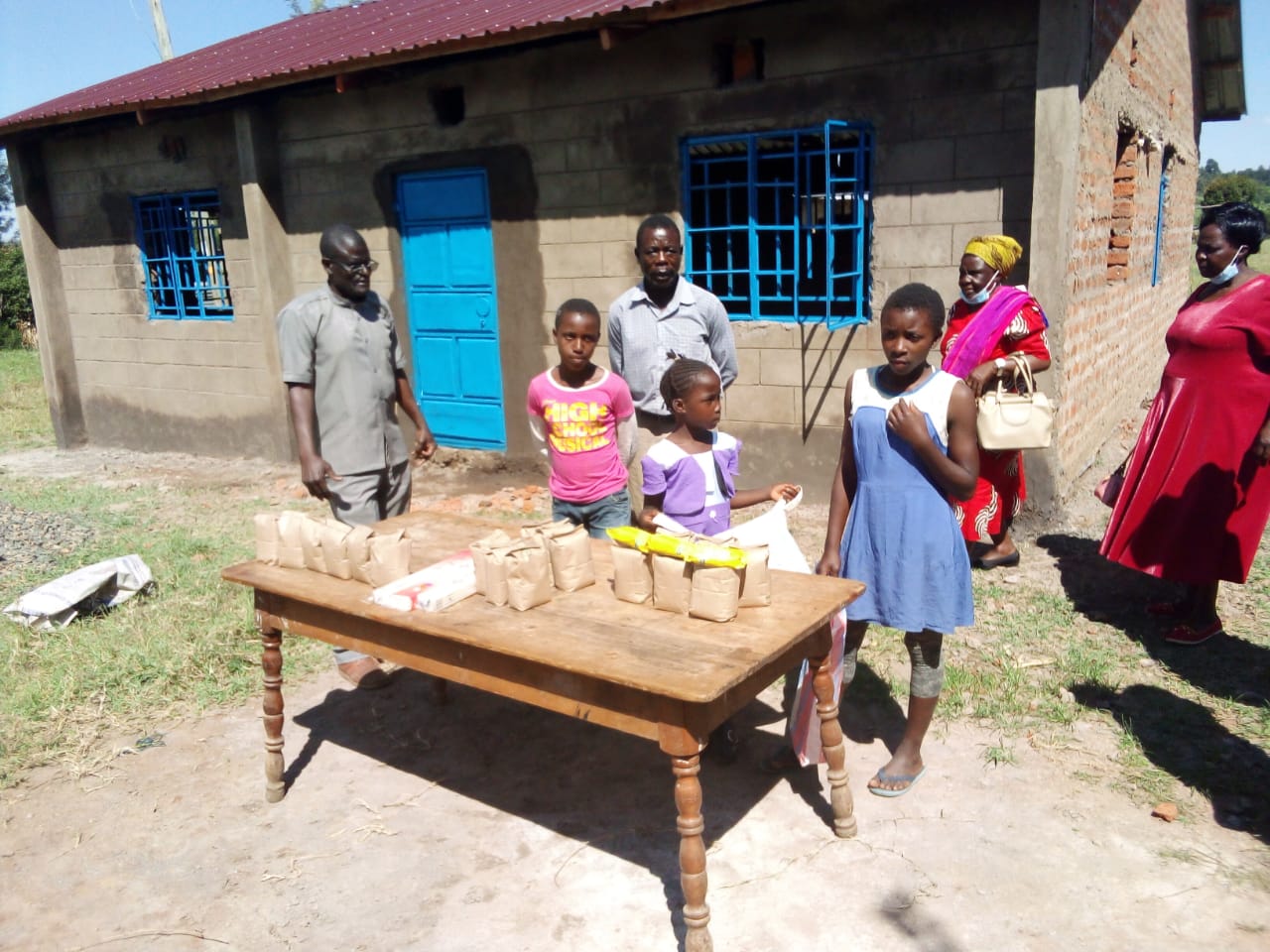 Im Frühling/Sommer des letzten Jahres, als die Kinder in Folge der Pandemie die Schule nicht besuchen durften, machten sich drei Mädchen daran, im nahe gelegenen Fluss Sand aus dem Wasser zu entziehen, welcher von den Handwerkern für die Arbeiten des Kindergartens verwendet werden konnte. Schulleiter Wycliffe Mukasa, unsere Vertrauensperson im Norden Kenyas sorgte nun für einen Akt der Solidarität. In einer offiziellen „Feier“ wurde den Kindern jeweils 5 kg Zucker, 5 kg Reis sowie Teeblätter und Seife überreicht, als Lohn für ihre Arbeit. Damit sind diese Familien für die nächsten 3 Wochen wieder versorgt. Eine schöne Aktion, welche wir euch mit den folgenden Fotos gerne zeigen.