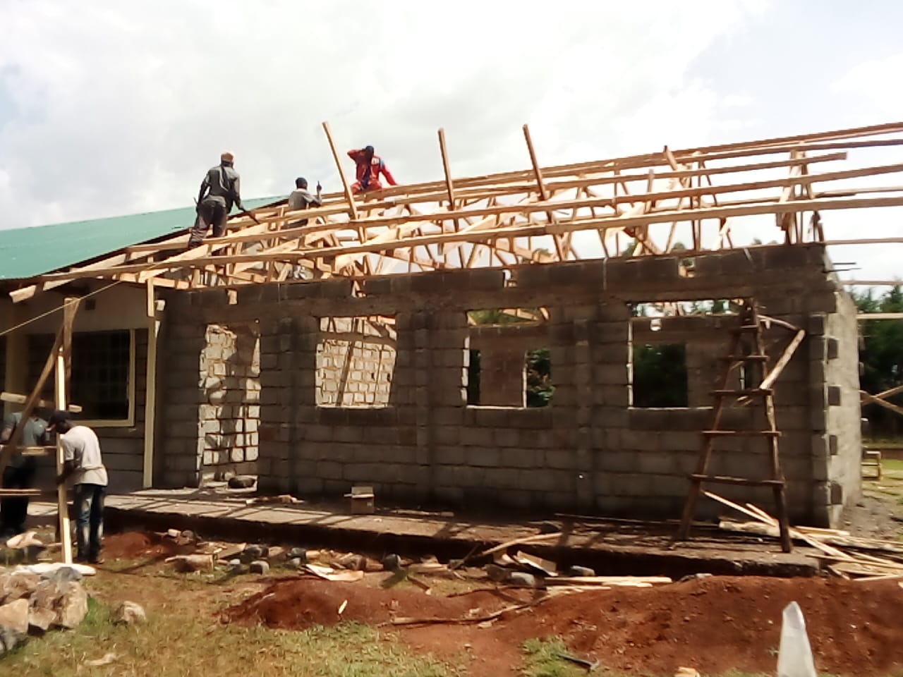 Panpepper im Nordwesten von Kenya (nähe Eldoret). Das Material wird von uns jeweils im Voraus bezahlt, damit die Handwerker arbeiten können. Der Lohn wird direkt vom unserem Vertrauensmann
