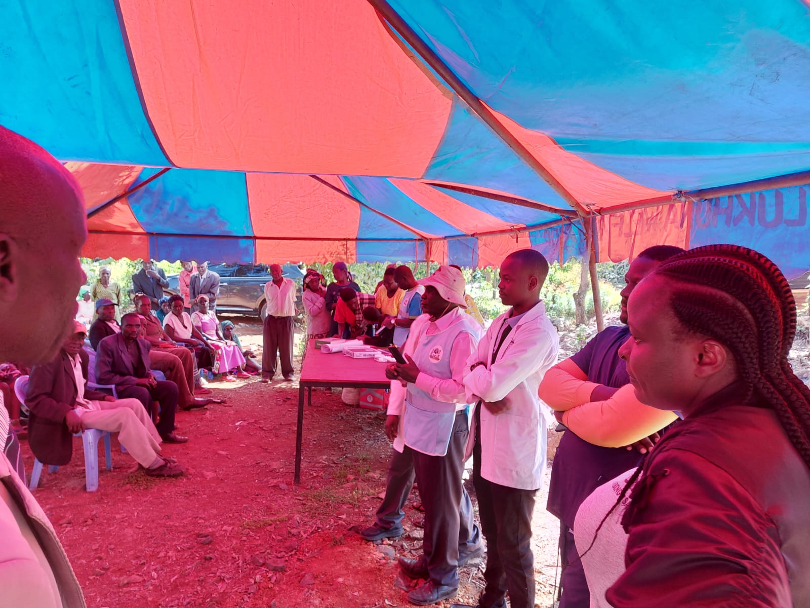 Es waren alle Bewohner der nahegelegenen Dörfer zu einem Arztbesuch eingeladen. Für den Betrieb kamen über 20 Ärzte und Fachkräfte in "unser" Spital: Allgemein-Ärzte, Augenarzt, Zahnarzt,