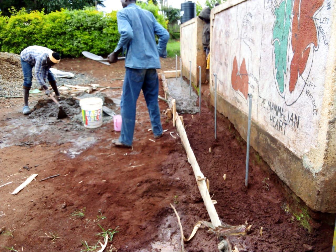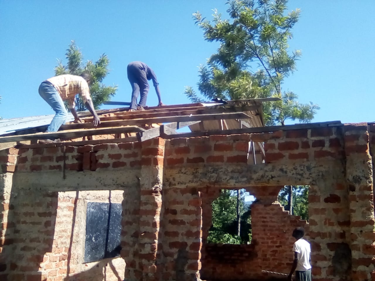 Da das erste Projekt gut funktioniert hat, sowohl in der Zusammenarbeit wie auch in der Kostenschätzung, wagen wir uns an die nächsten Prioritäten. Bei unserem Besuch haben wir gesehen, dass ein Klassenzimmer nicht mehr in Betrieb war, seit es durch starke Winde eingestürzt war. Dazu gab es Wände bei den bestehenden Gebäuden, bei denen Armierungseisen hervorragten und aus unserer Sicht gefährlich für die Kinder waren, und kaputte Böden. Deshalb galt es als nächstes, die bestehende Infrastruktur zu reparieren und renovieren. Hier die Bilder dazu: