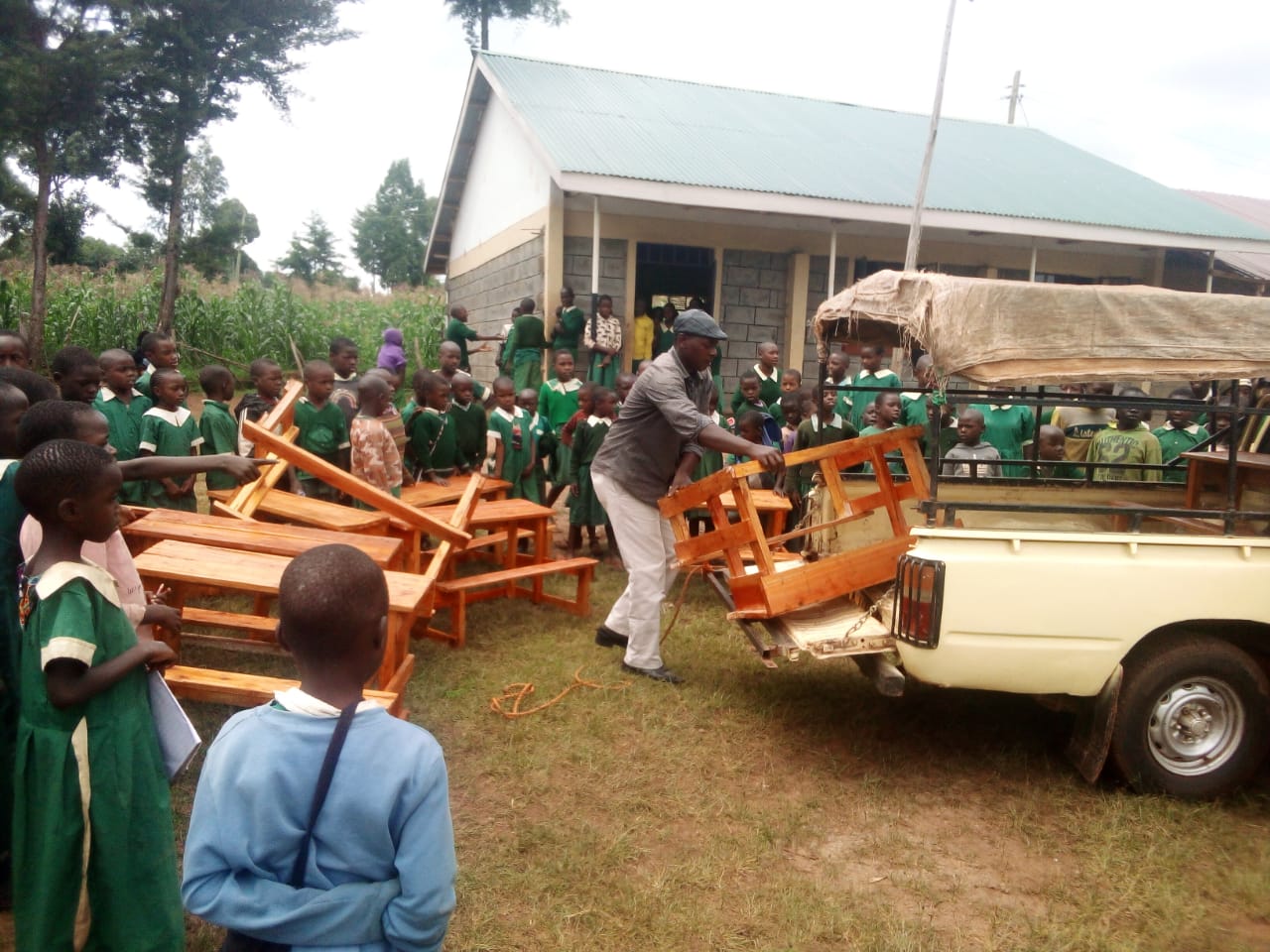 Die Schulen in Kenya sind nach einem Corona-Unterbruch nun wieder teilweise und unter Einhaltung von Massnahmen geöffnet. Damit die beiden Schulen in Turbo und Ivona die Bedingungen erfüllen können, haben wir in Water-Points zum Händewaschen investiert und zusätzliche Schulbänke gekauft. Bei den Bildern sehen Sie die Corona-Informations-Veranstaltungen, die Arbeiten für die Water-Points und Herstell- und Lieferprozess der Tische und Bänke. Vor allem der Transport am Schluss ist ziemlich spektakulär.