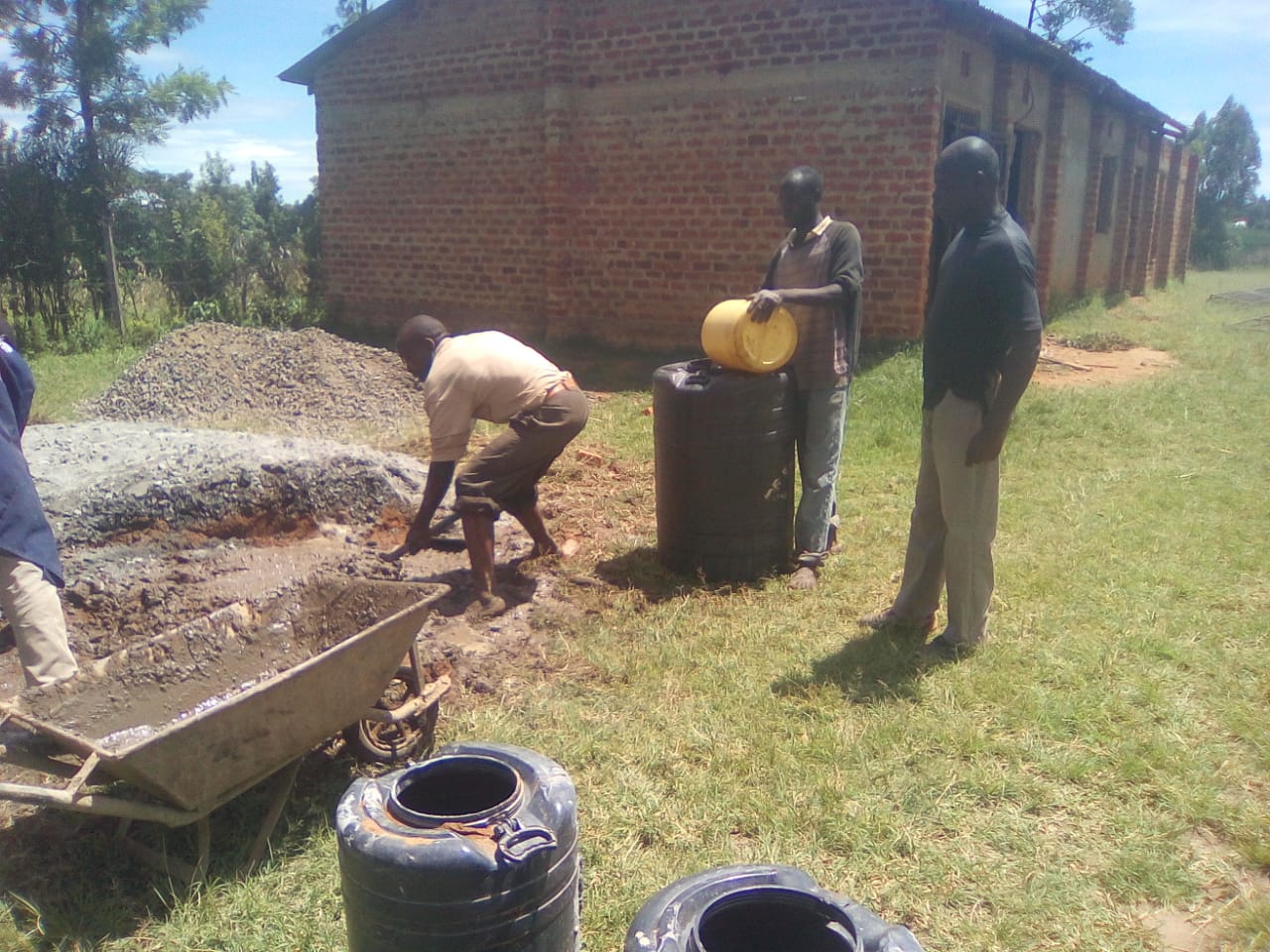 Das nächste Projekt konnten wir im April 2021 beginnen. Die Mulwaki Primarschule befindet sich ganz in der Nähe von unserer ersten Schule in Panpepper und wurde 2014 gegründet. Der Name setzt sich aus den drei Schulen Mu-gunga, Lwa-nda und Ki-zito zusammen, welche zu viele Schüler hatten und somit die ersten 340 Schüler "beisteuerten". Seitdem ist die Schule gewachsen und hat nun ca. 780 Schüler. Das Schulmaterial und die Lehrer werden von der Regierung gestellt, aber die lokale Infrastruktur ist Aufgabe der lokalen Community. Aktuell gibt es ein festes Klassenzimmer, Toiletten und einige Unterstände.