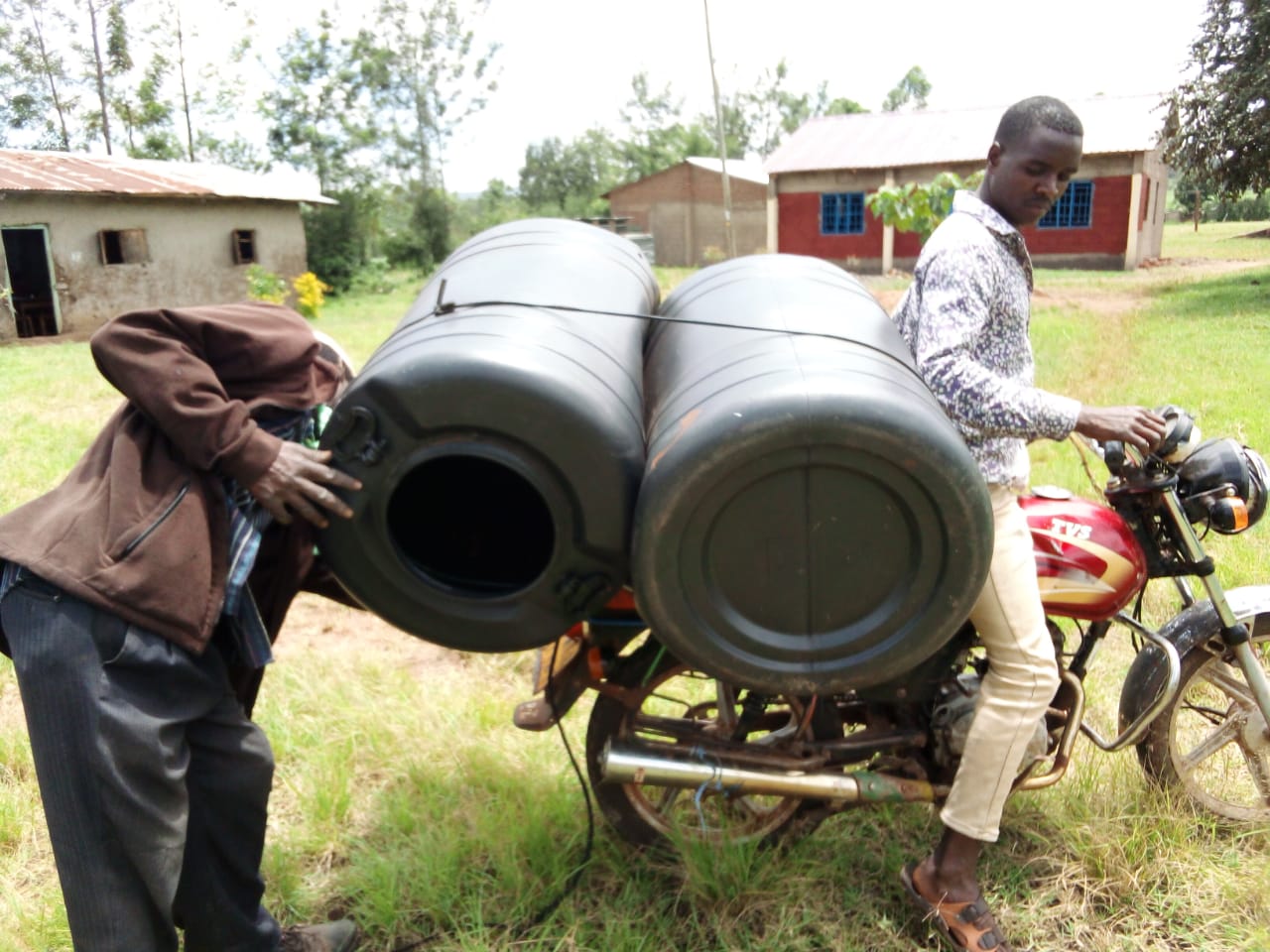 Dazu haben wir für die Beams und Ivona Fussballtore und Tischtennistisch organisiert. In den Bildern sieht man den Sportplatz vorher und nachher und wie Wycliffe die Besorgungen gemacht hat: Im