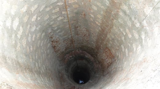 der fertige 75 Meter tiefe Brunnen.